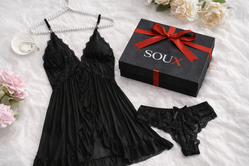Elegant Black Lace and Sheer Babydoll Nightdress